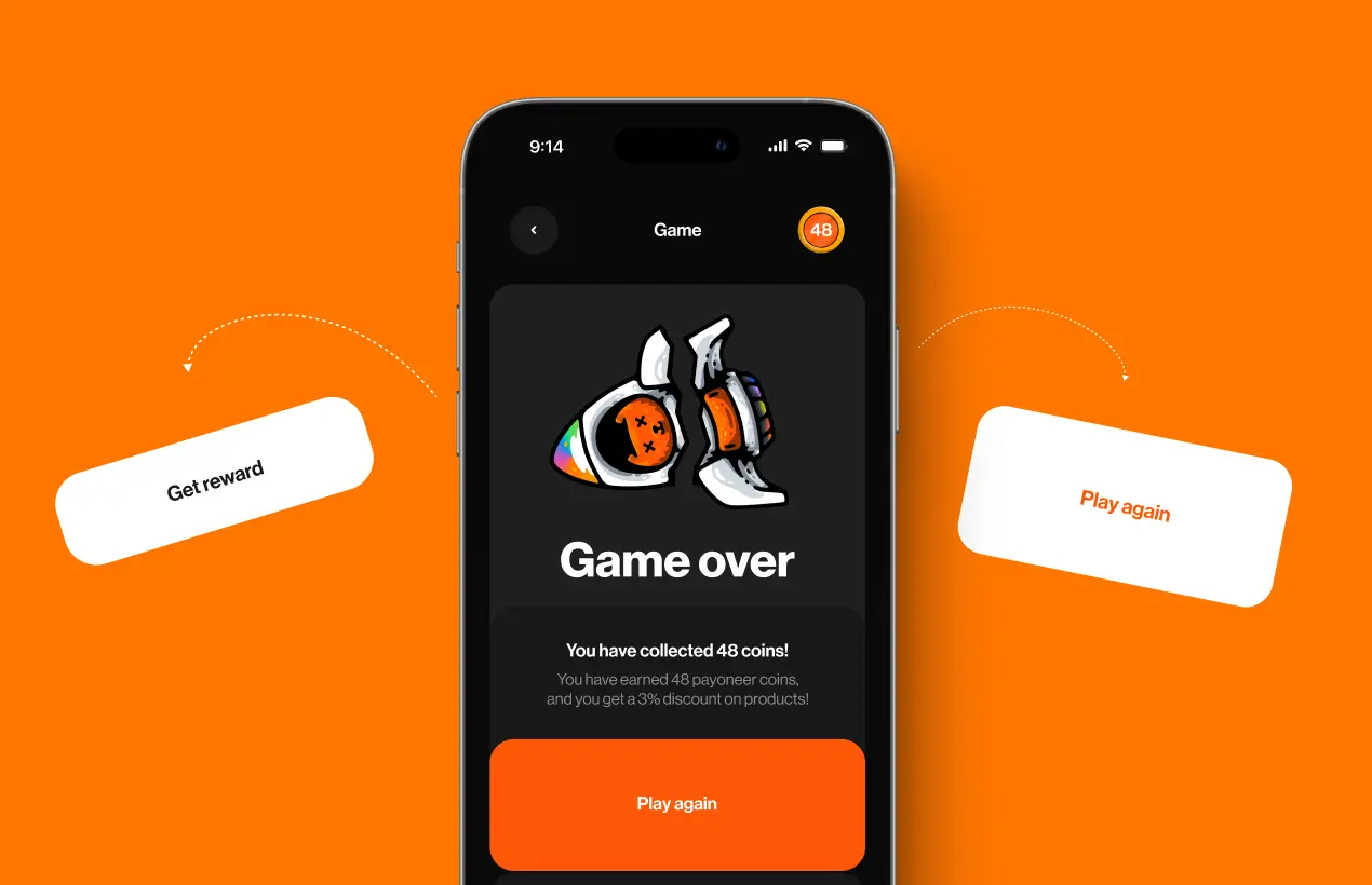Our aim was to strike a balance, ensuring the game was both user-friendly and challenging to maintain user interest. The rules were kept simple: collect as many Payoneer coins as possible while evading numerous obstacles. The more coins users gathered, the greater the discount they earned on Payoneer services.