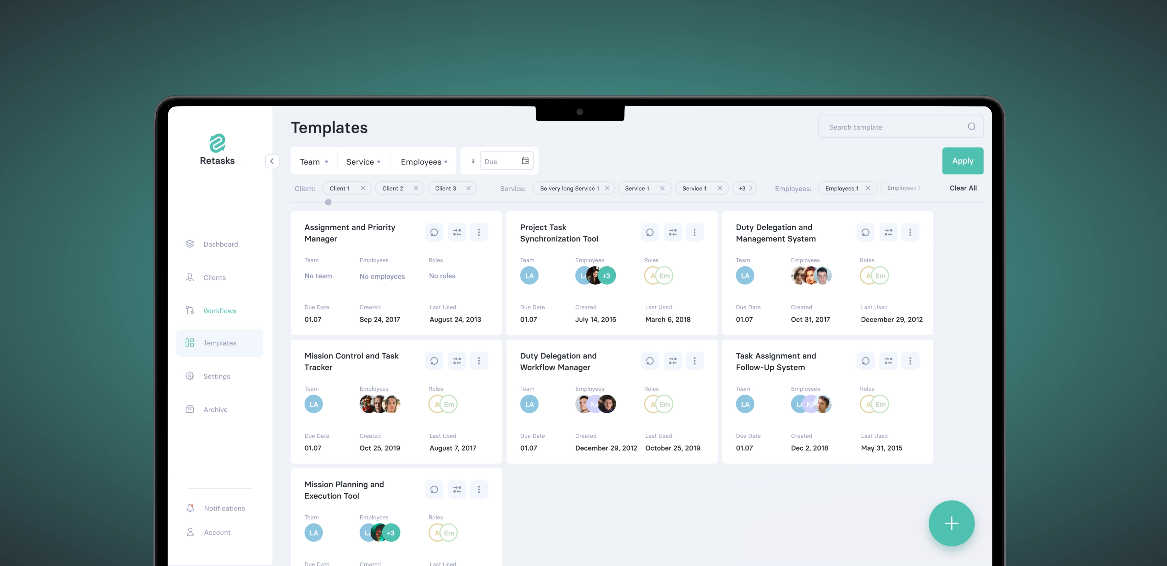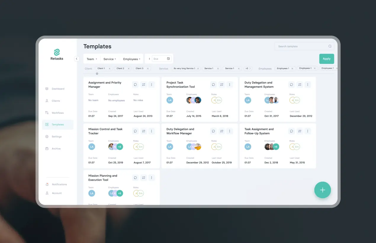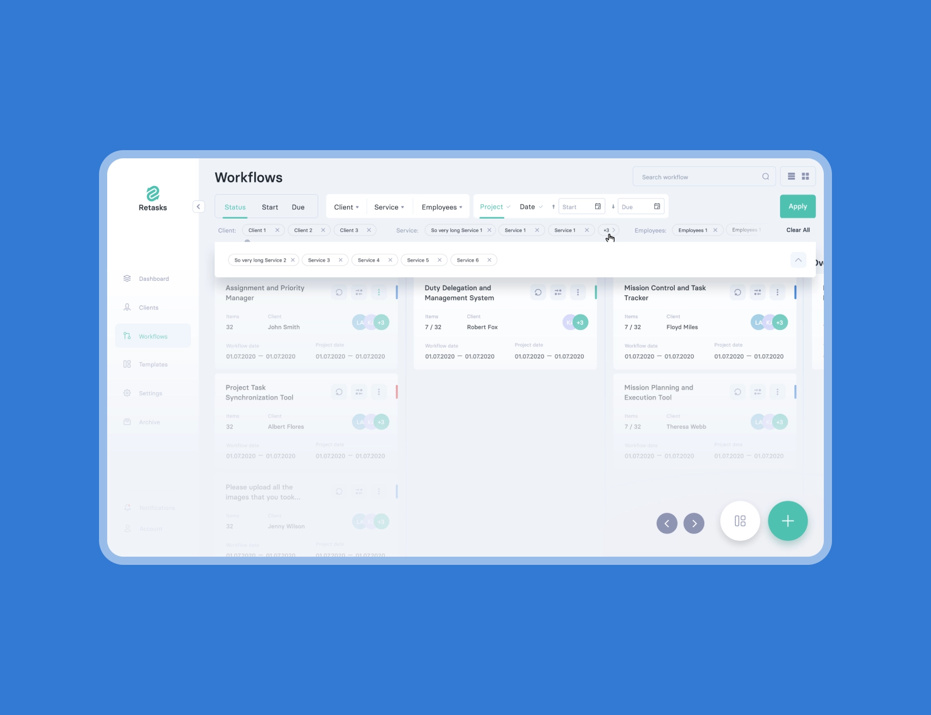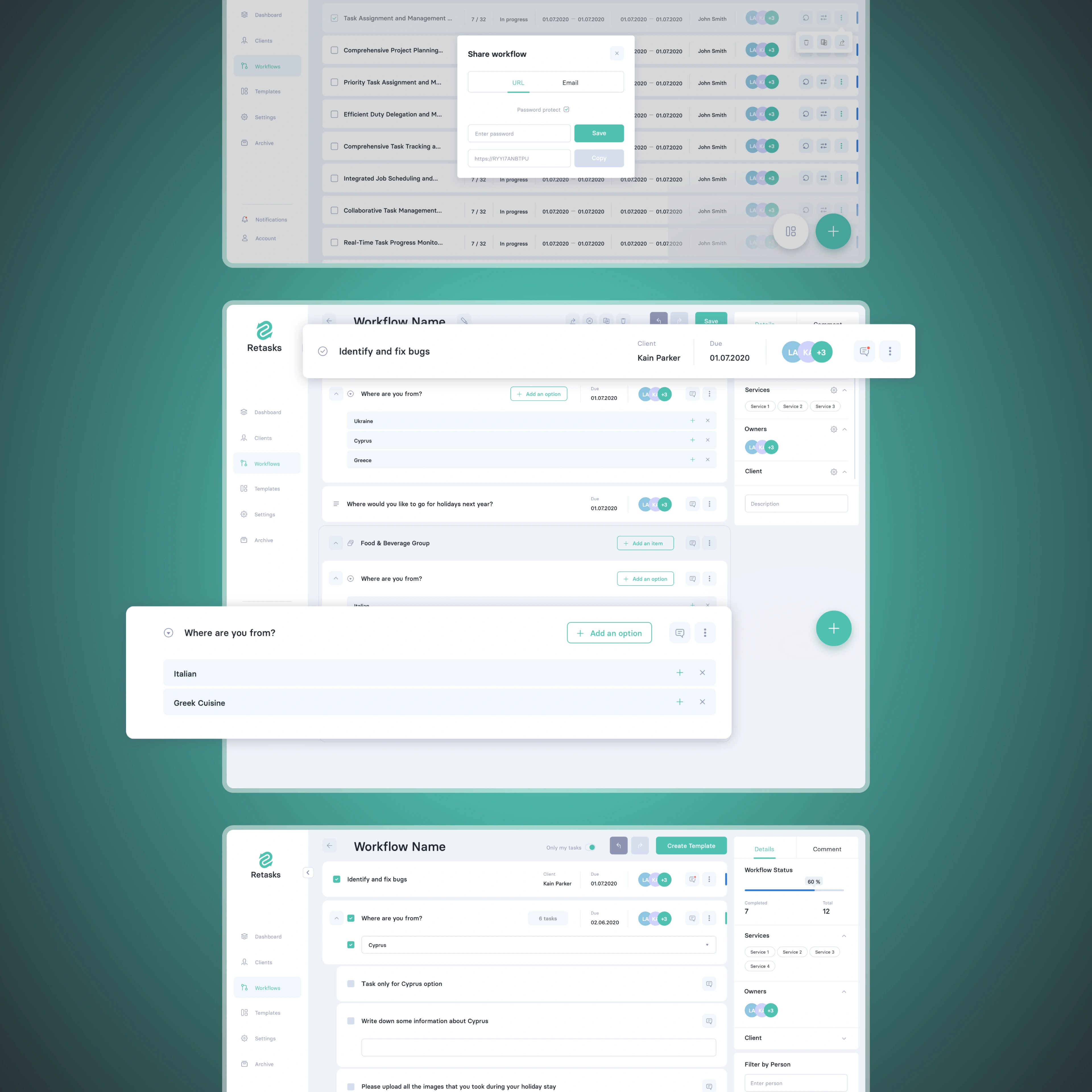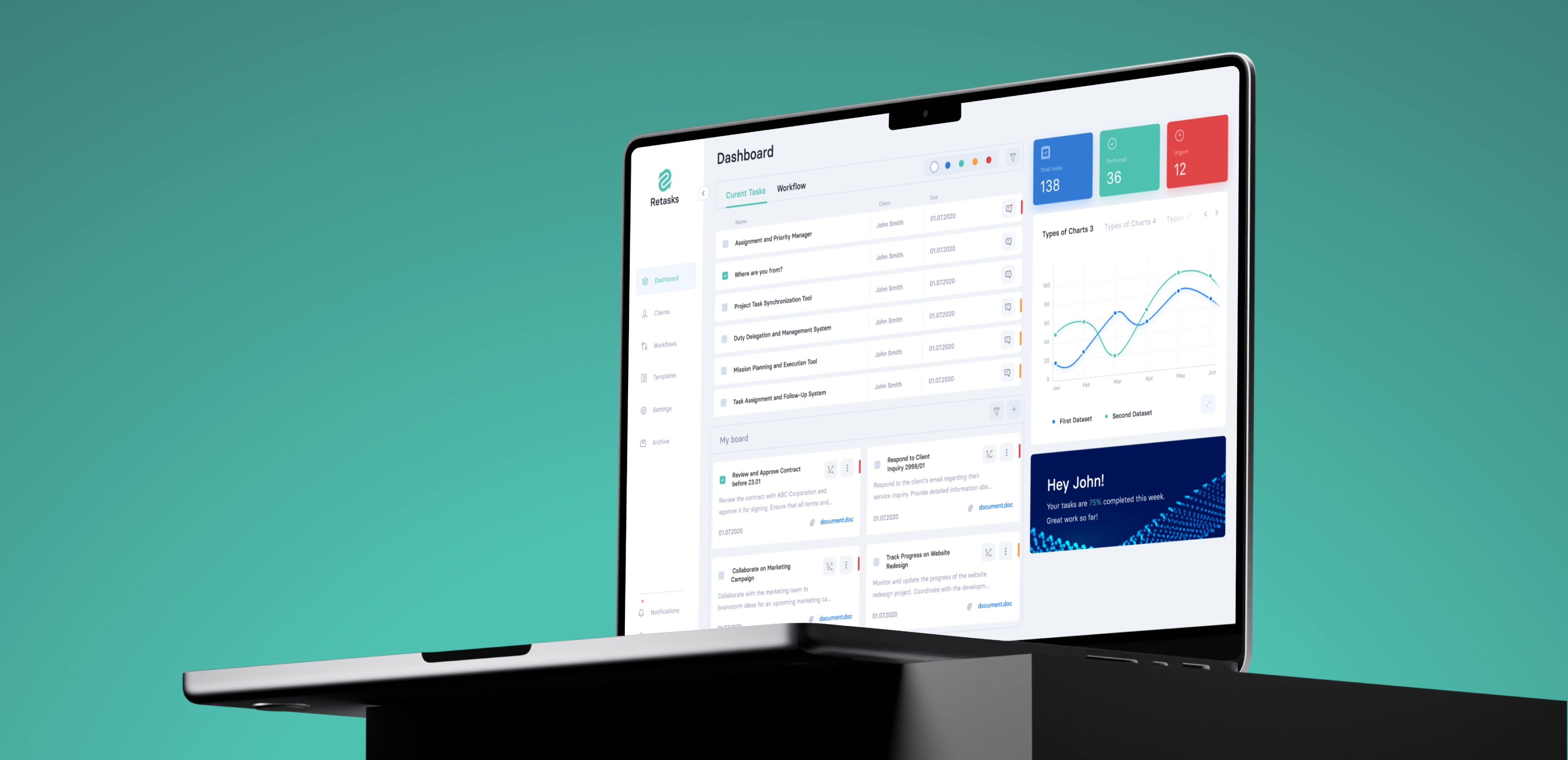 In the world of law, finance, and accounting, managing lengthy, repetitive tasks within workflows spanning from 2 weeks to 6 months presented an intricate challenge. It was this very challenge that inspired pur clients to found Retasks — a B2B solution with a powerful set of features for setting up, doing, and monitoring repetitive tasks.