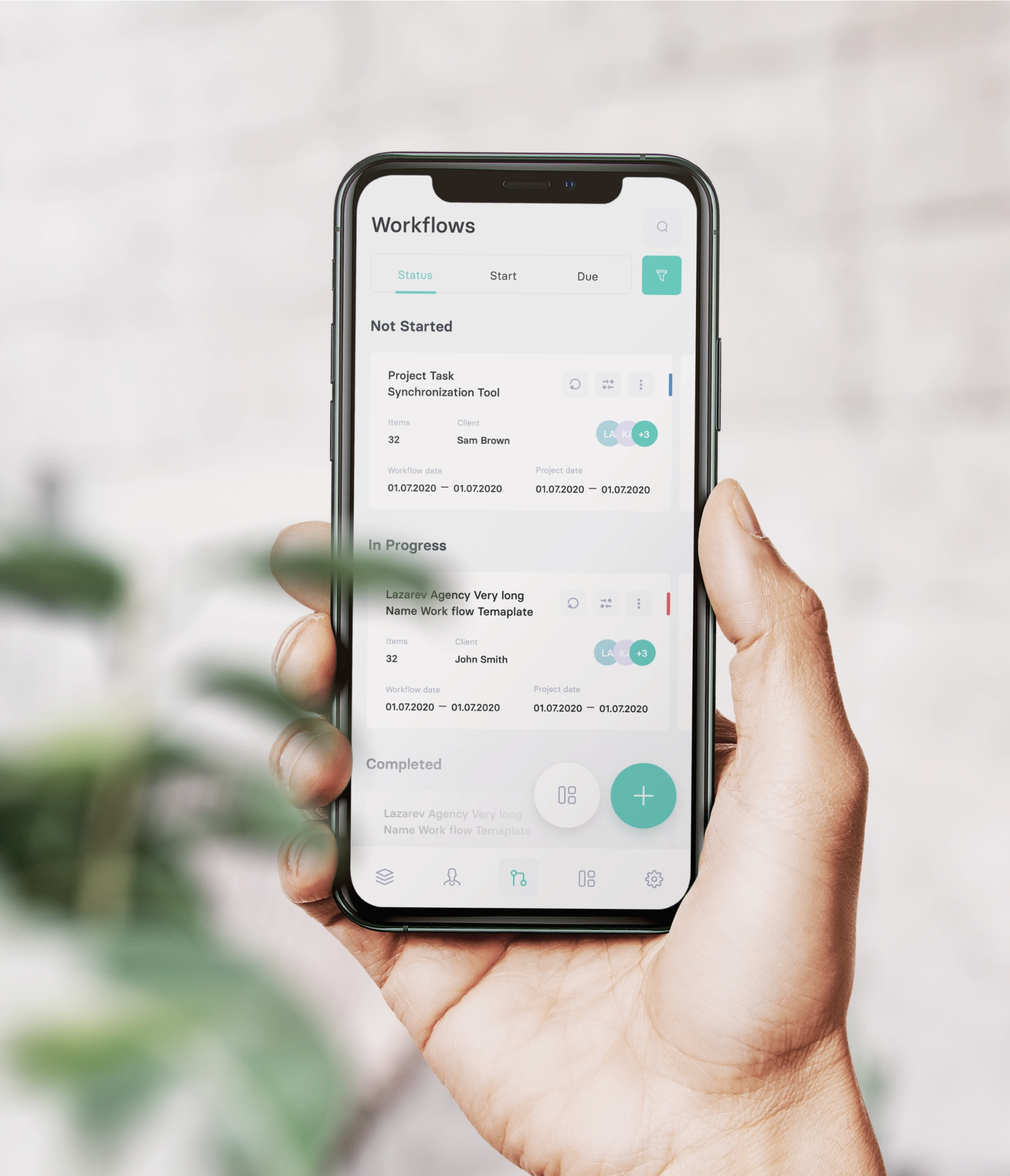 The Workflow module showcases all workflows categorized by statuses, spanning from "Now Started" to "Completed."These statuses undergo automatic updates; when a task's start date commences, it transitions to "In Progress," and upon the completion of all tasks, it  shifts to "Completed." These mechanics are designed to streamline user experience.