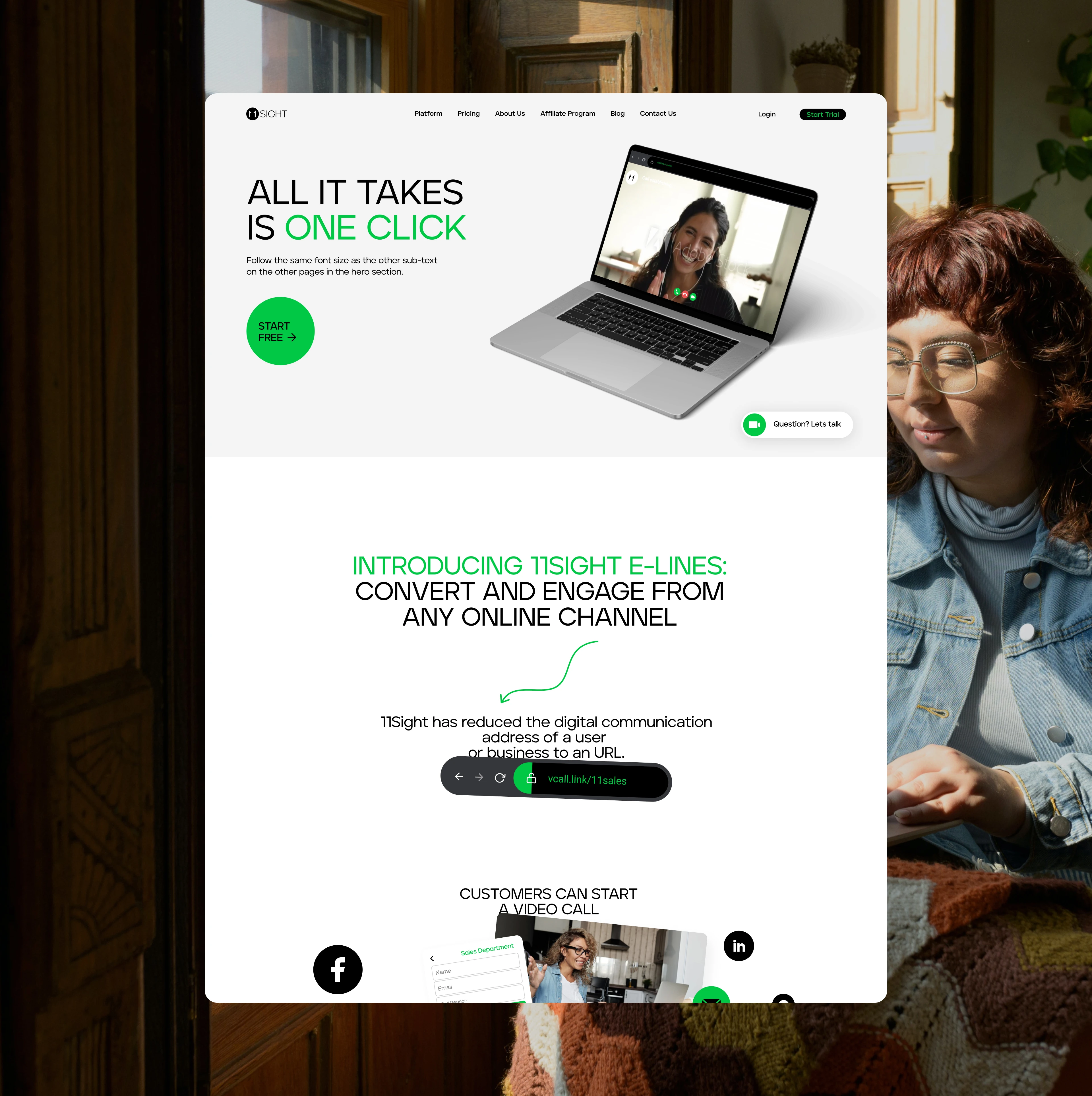 We fused storytelling and animations to reflect the innovative nature of the product while adding a human touch to the site. To capture sales, we offered the audience a free trial, that is, connect with 11Sight representatives via their video call platform.