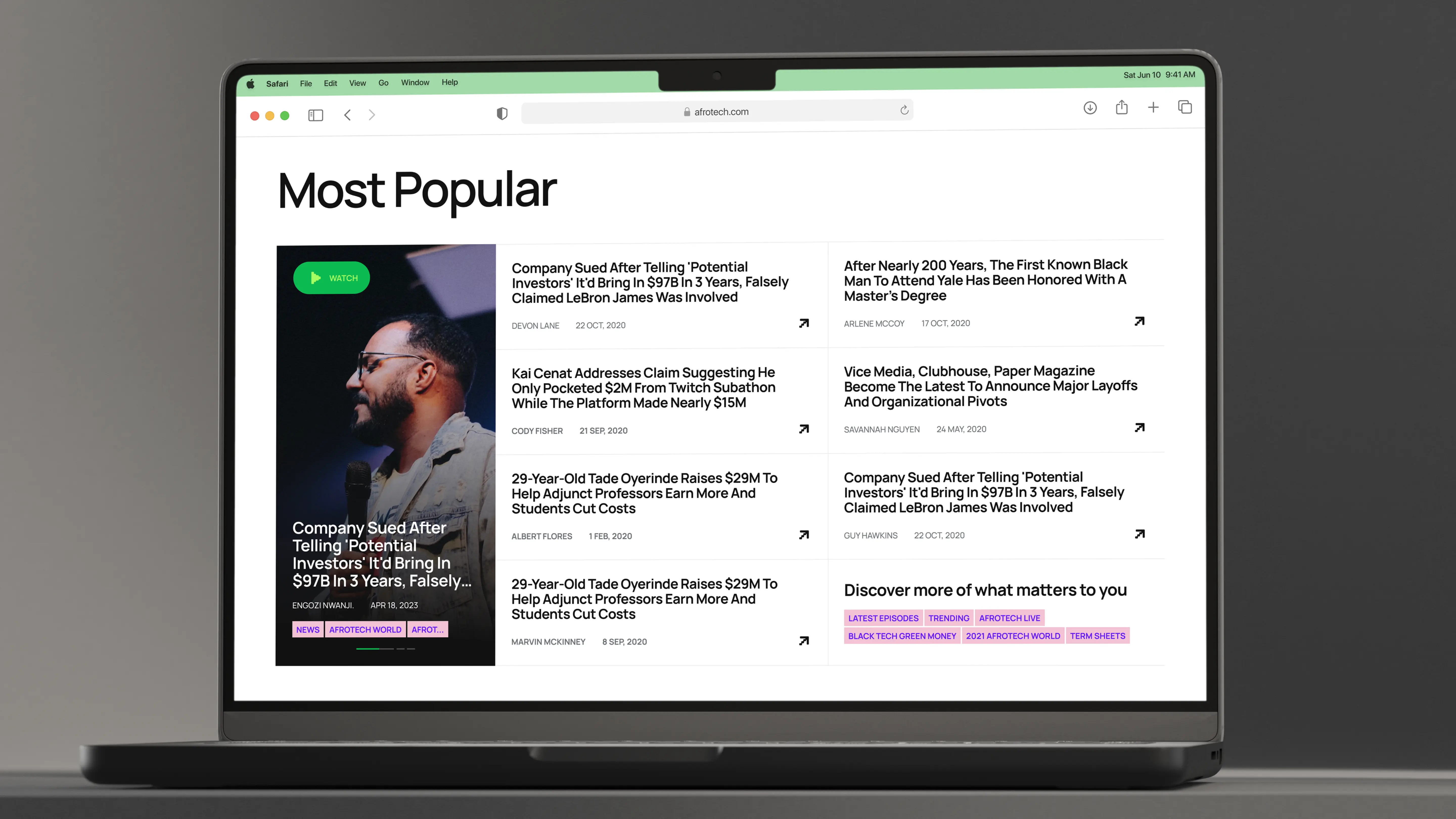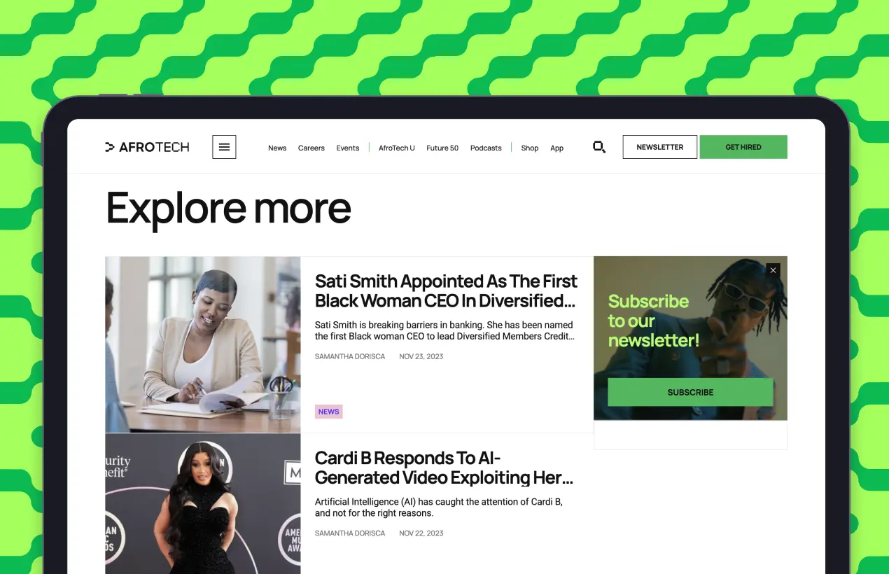 To achieve this goal, the AfroTech website was created—a news platform featuring regularly updated content focused on black individuals in IT, business, education, and beyond.