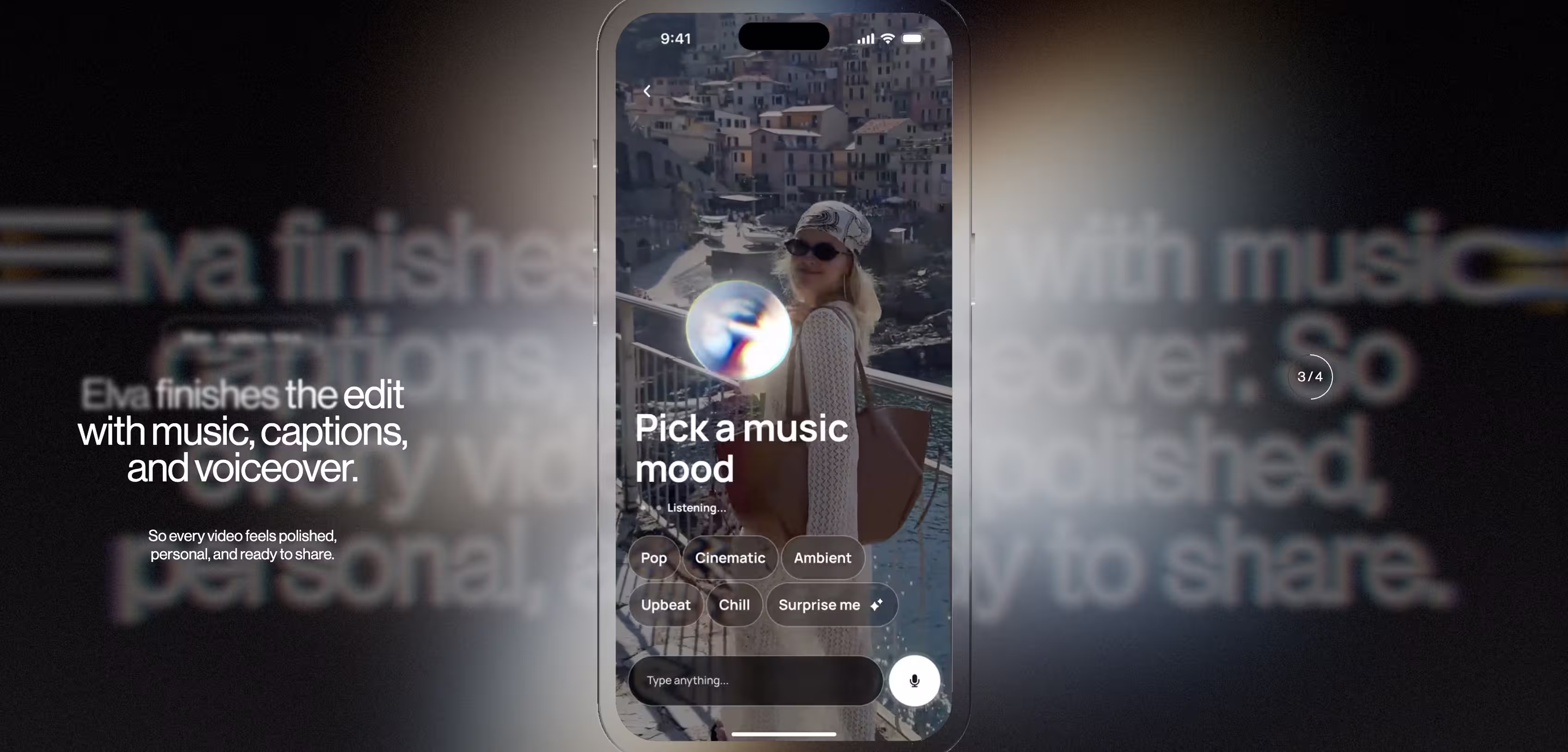 Every brand has a color palette. Elva’s palette is technically infinite — because it is generated from whatever the user films.