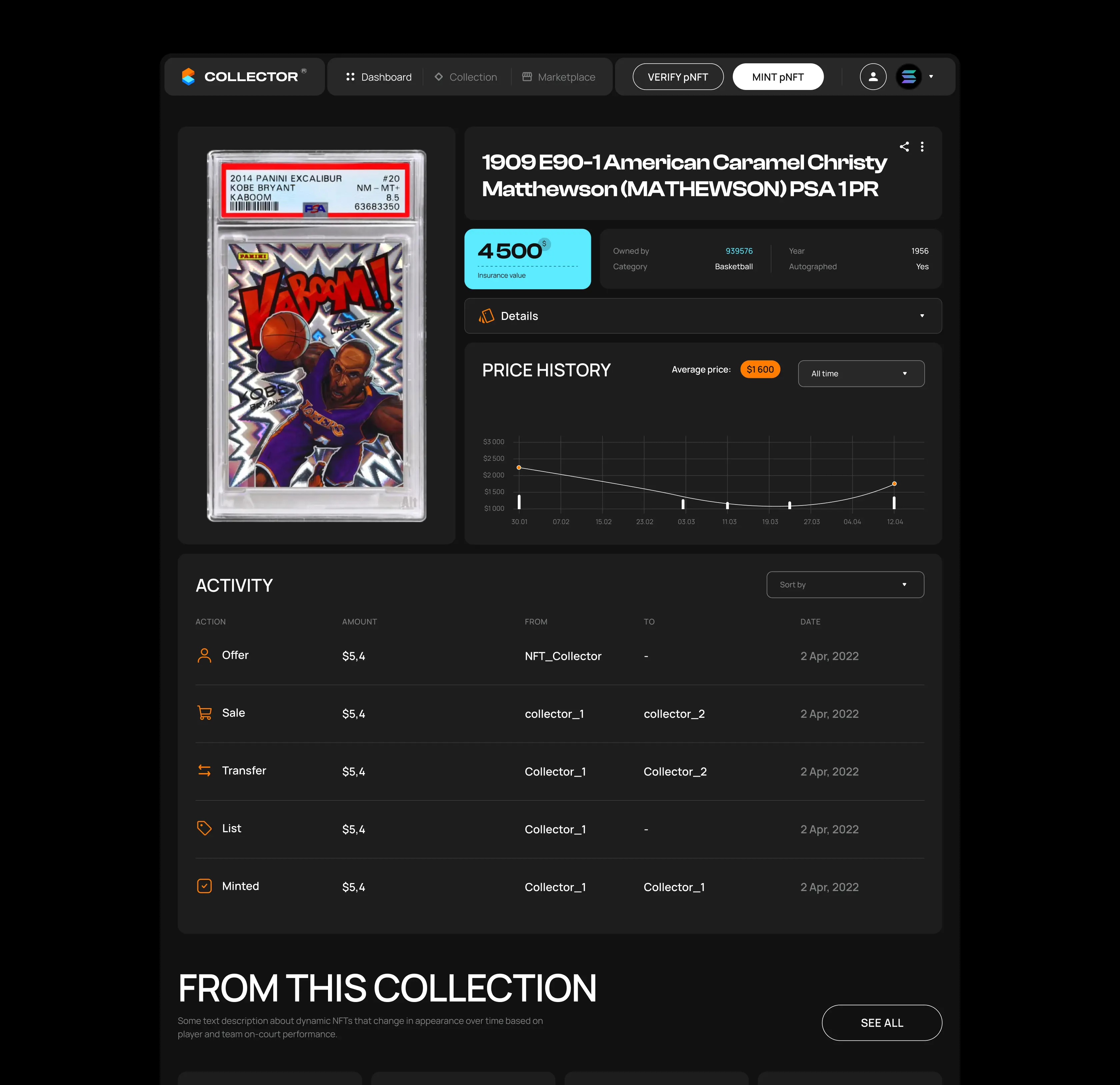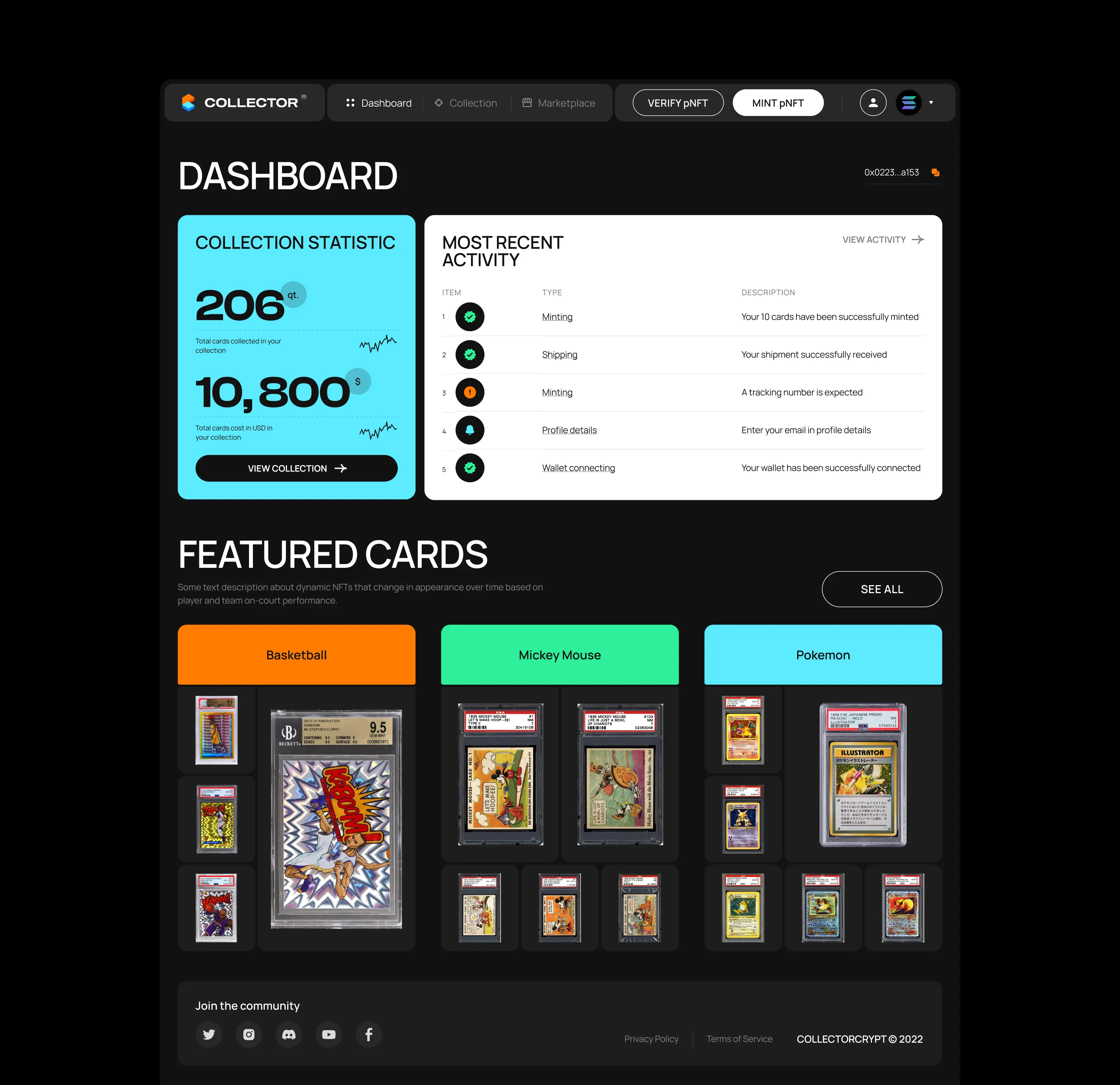CollectorCrypt aimed to modernize the collectibles market by addressing challenges related to the secure storage, transparency, and exchange of collectible cards. Their Web3 marketplace leverages blockchain-backed pNFTs to ensure card authenticity and ownership, allowing collectors to confidently manage, trade, and showcase their assets. The platform solves issues around the physical storage of collectibles, offering secure vaults that guarantee safety and insurance for high-value items.