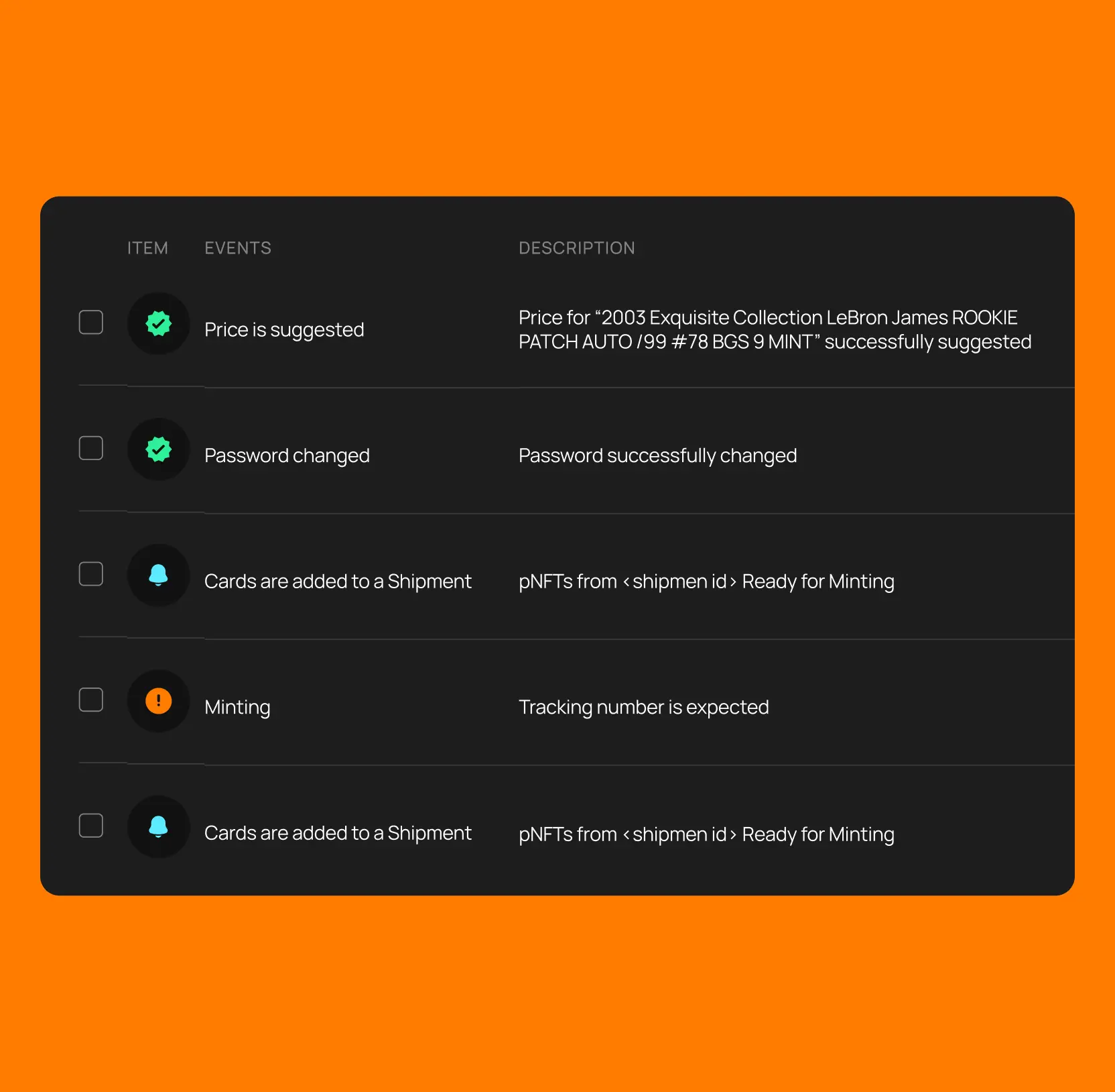 The most critical onboarding step is transferring physical cards to the CollectorCrypt vault. We developed a robust tracking system assigning a unique ID to each shipment, tracing it from pickup through delivery and authentication. Verified assets are minted as pNFTs on the Solana blockchain, providing secure, digital access to physical cards and establishing collector trust in the platform.