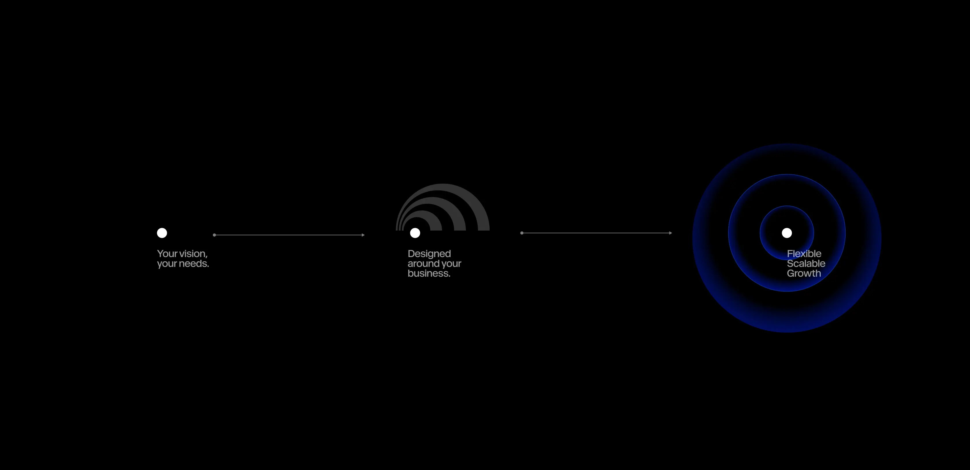 This shape works as a visual story. At the center, the business with its unique challenges. Around it, expanding layers of Dynascale’s support and technology, turning the starting point into a sustainable growth path. The logo is not just a symbol; it communicates the core idea: “we design solutions around you, not the other way around.”