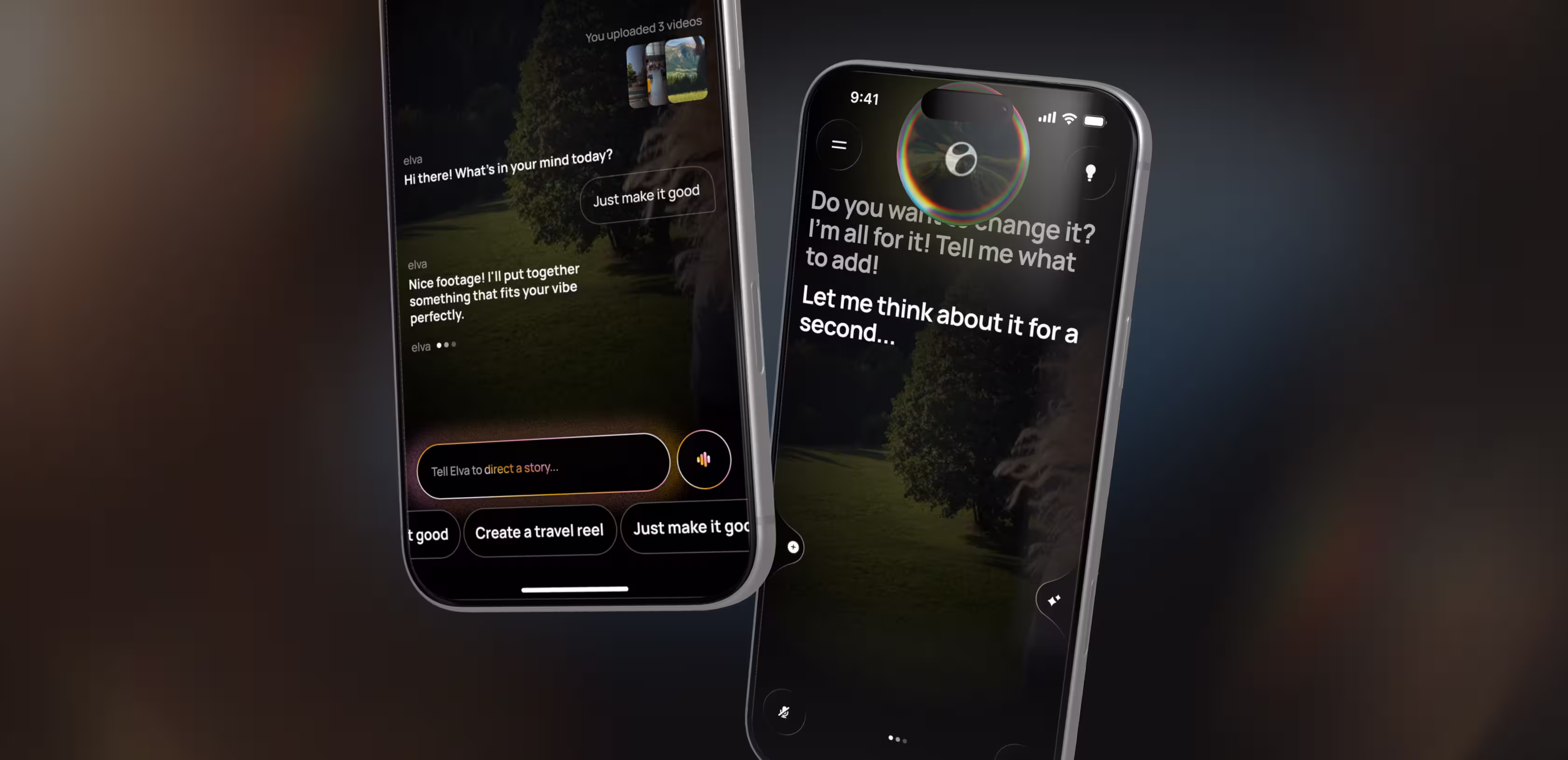 Users say 'make a travel reel from last weekend' or 'put together something fun from the kids’ birthday,' and Elva handles everything downstream: selecting the best clips, cutting to rhythm, adding music, applying a visual style. No timeline, no layers, no menus.