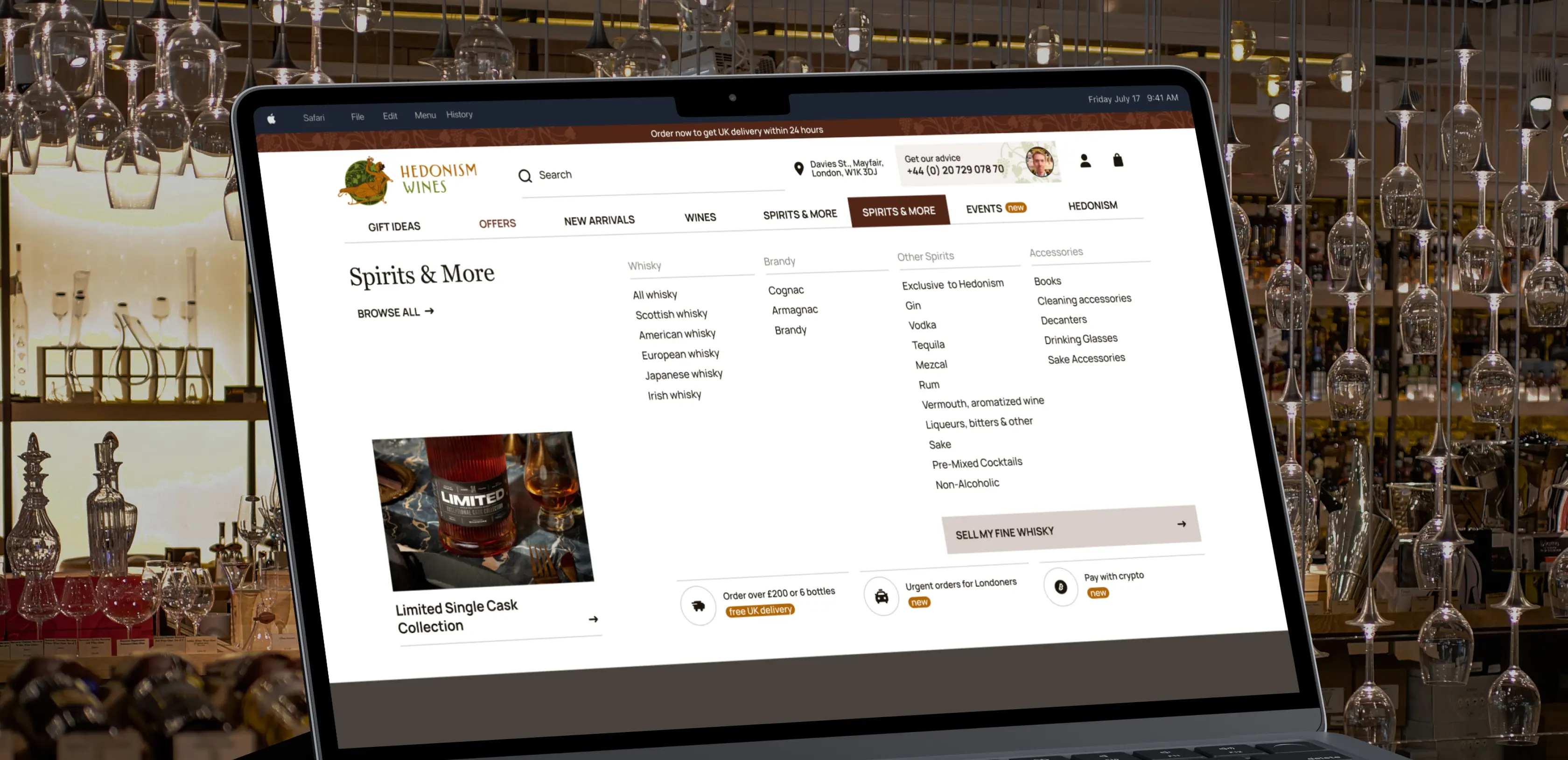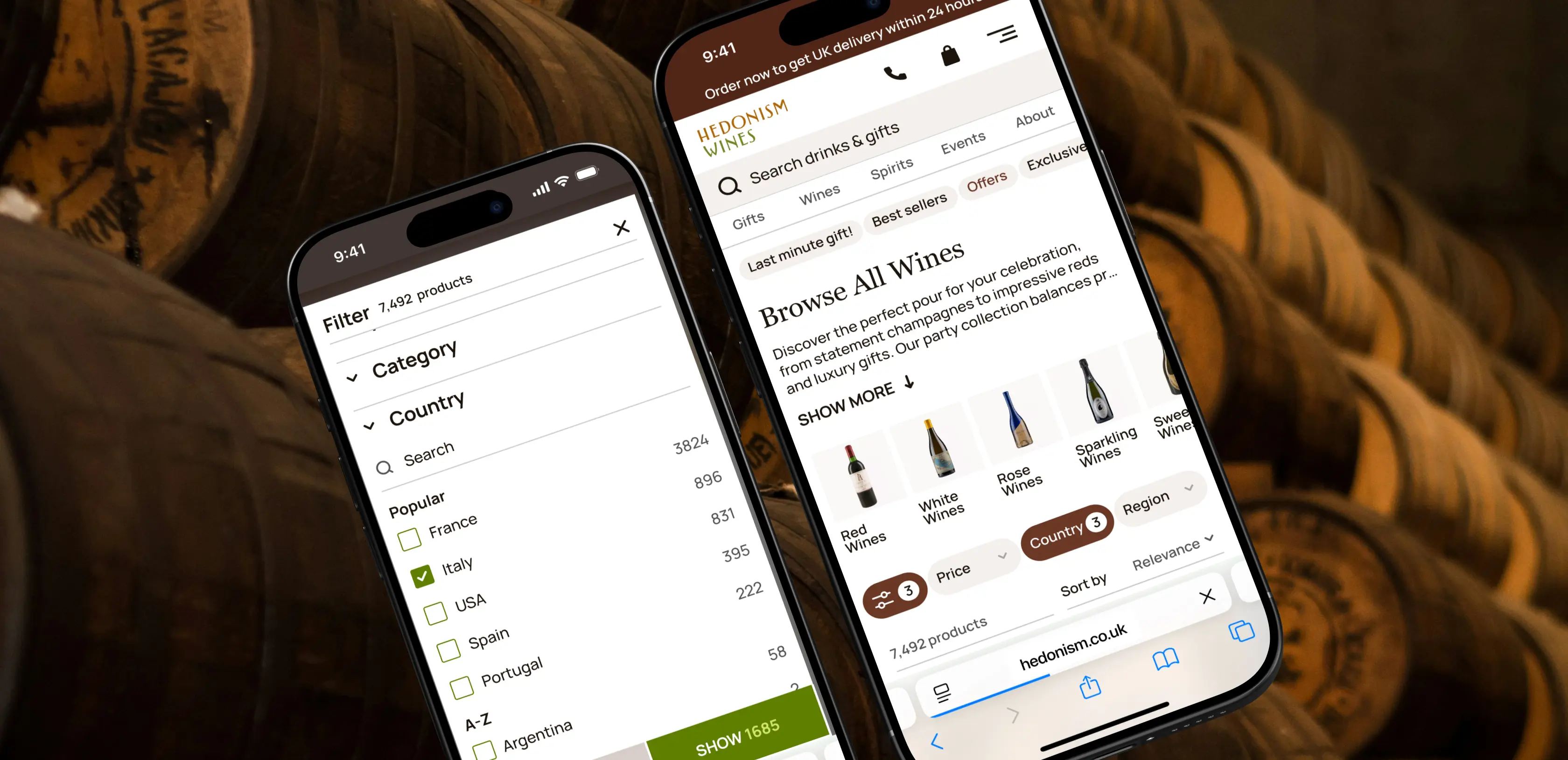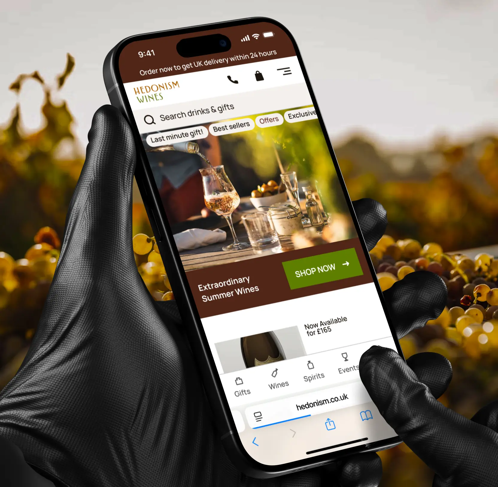 Hedonism Wines, known for curating an exceptional selection of over 6,500 wines and 3,000 spirits, was struggling to convert its sophisticated clientele from offline to online. While their physical store had earned a reputation as one of London's finest wine boutiques, their website failed to match this level of excellence, especially when it came to providing a seamless user experience for mobile customers.