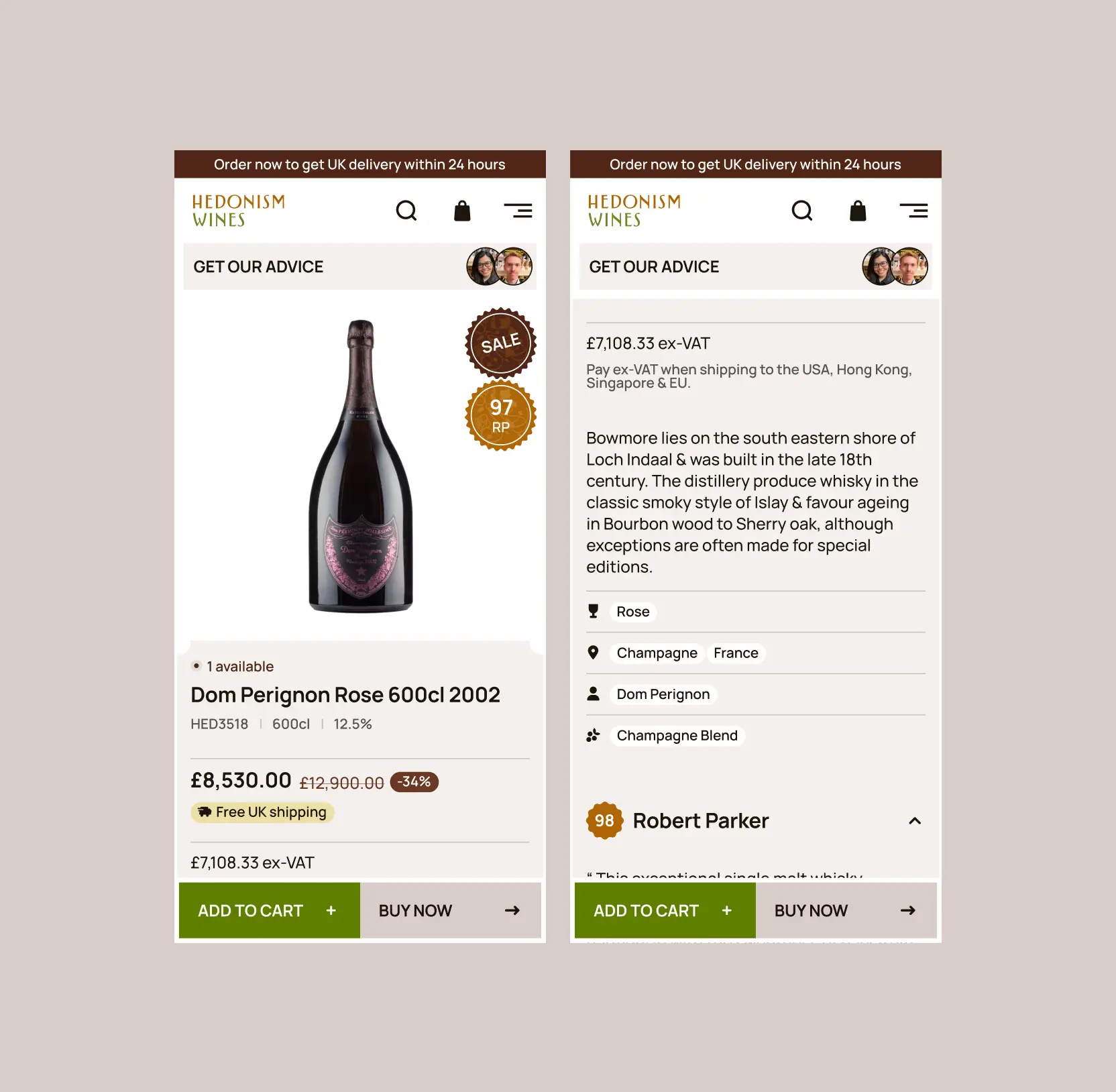 How we helped a premier fine wine retailer boost add-to-basket rate by 65% with a mobile-first redesign