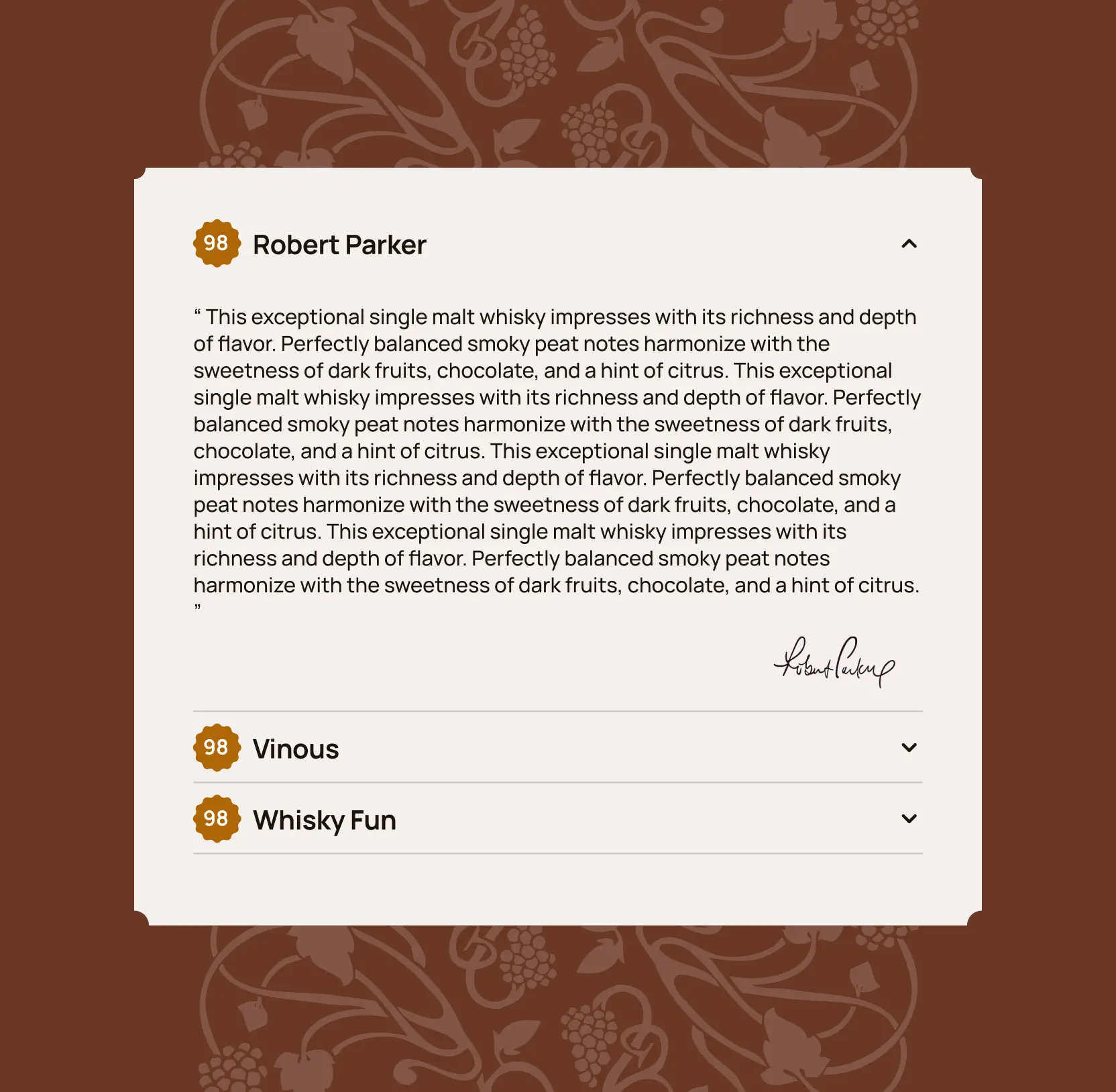 The original website did not effectively communicate Hedonism’s status as London's premier fine wine boutique. To strengthen its premium positioning, we integrated sommelier-curated collections and expert ratings from renowned sources like Robert Parker and Wine Spectator.