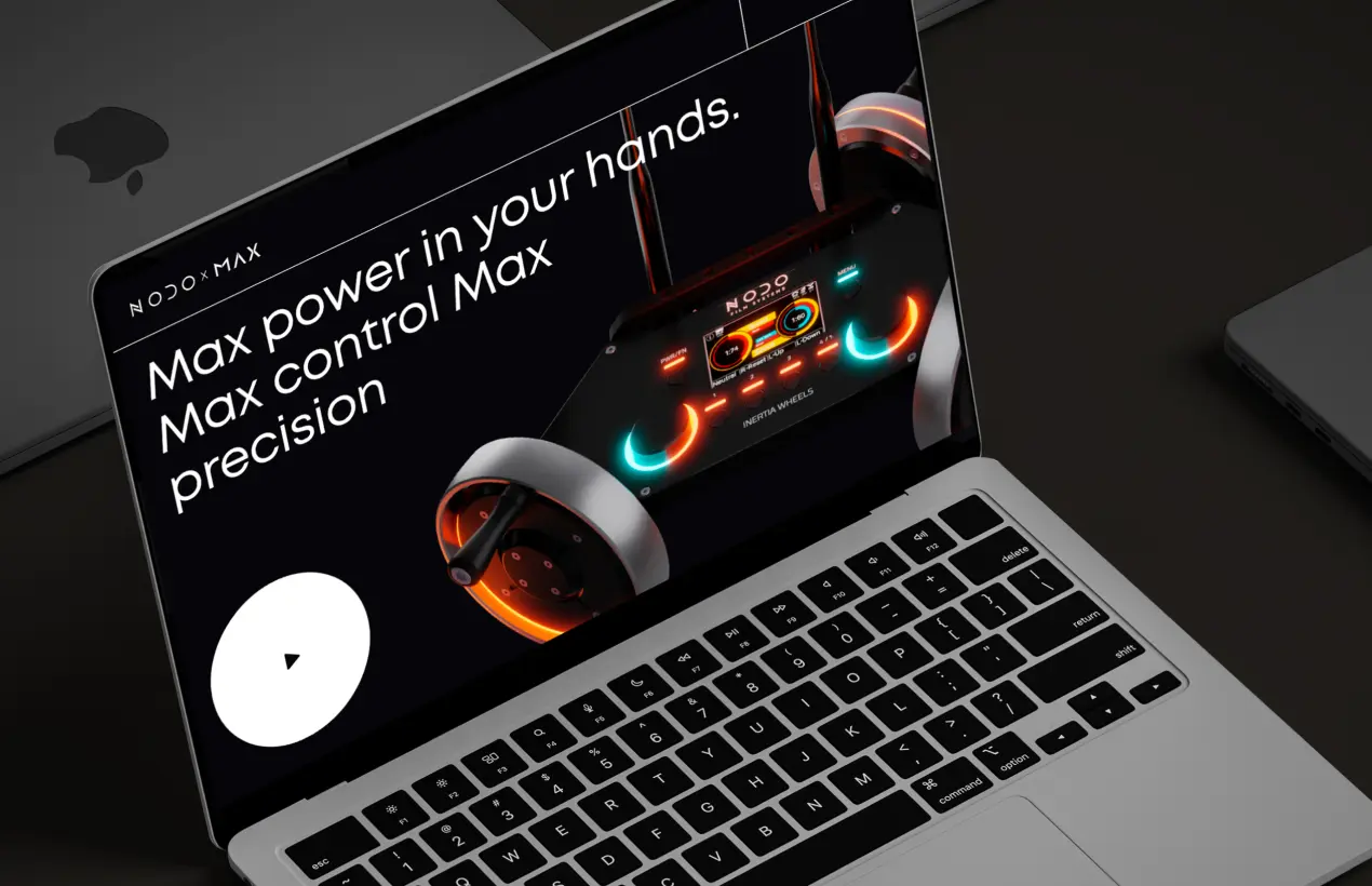 With a reputation for world-known equipment used in major films like The Grey Man, Reminiscence, and Obi-Wan Kenobi, NODO was already a global name. Building on their past success, NODO engaged Lazarev.agency not only to design an interactive promo page for their upgraded product, Inertia Wheels MAX, but also to create a top experience that resonated with their high market position, highlighted the value of Wheels technology, and expanded their audience reach.