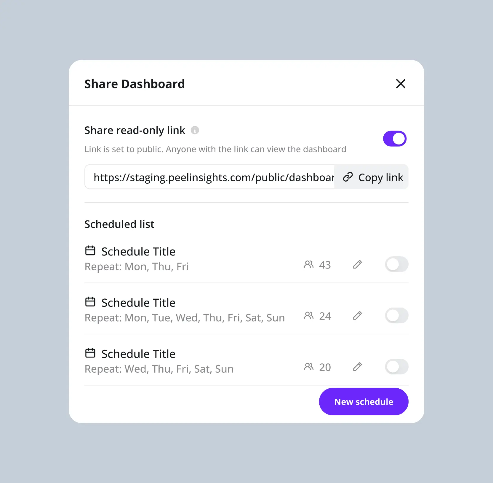 Peel’s modal windows, a key feature for quick interactions, had low engagement due to complexity. We simplified their layout and interaction flow, making them clearer, faster, and easier to use.