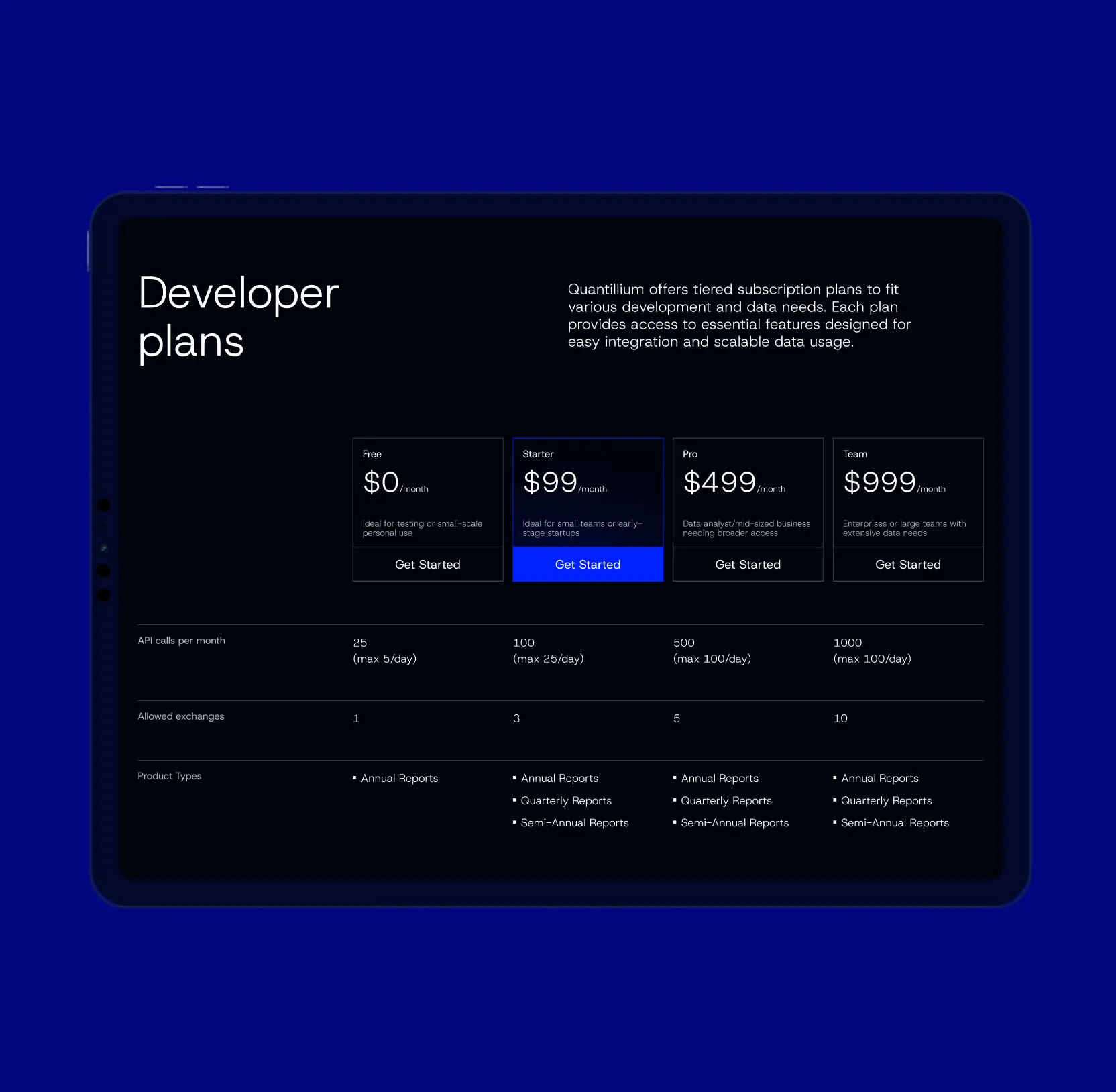 To address this, Quantillium partnered with Lazarev.agency to create a seamless user experience that makes financial data accessible, trustworthy, and relevant to developers, data teams, and decision-makers. Our task was to transform raw financial data into clear, compelling product descriptions that would increase product adoption and engagement.