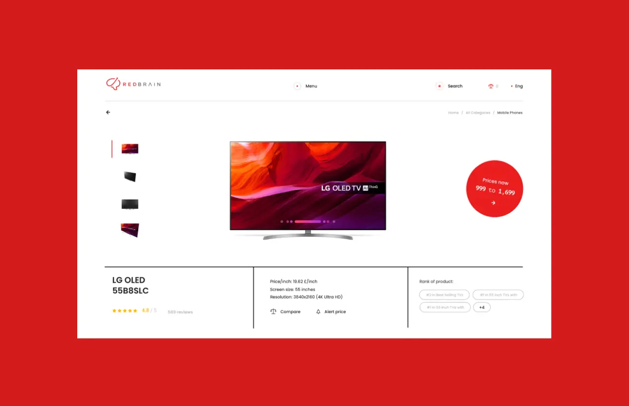 In line with Redbrain's core concept of intelligent shopping, we encourage consumers to take action: either activate Price Alerts to receive notifications whenever the product price drops, or compare the product with other market offers.