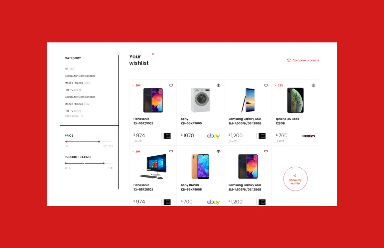 The catalog is meticulously crafted for personalization, catering to user preferences through advanced filters and sorting options. The initial product preview in the catalog, which aligns most closely with the user's intent, boasts larger dimensions to seize consumers' attention and guide them toward product exploration.