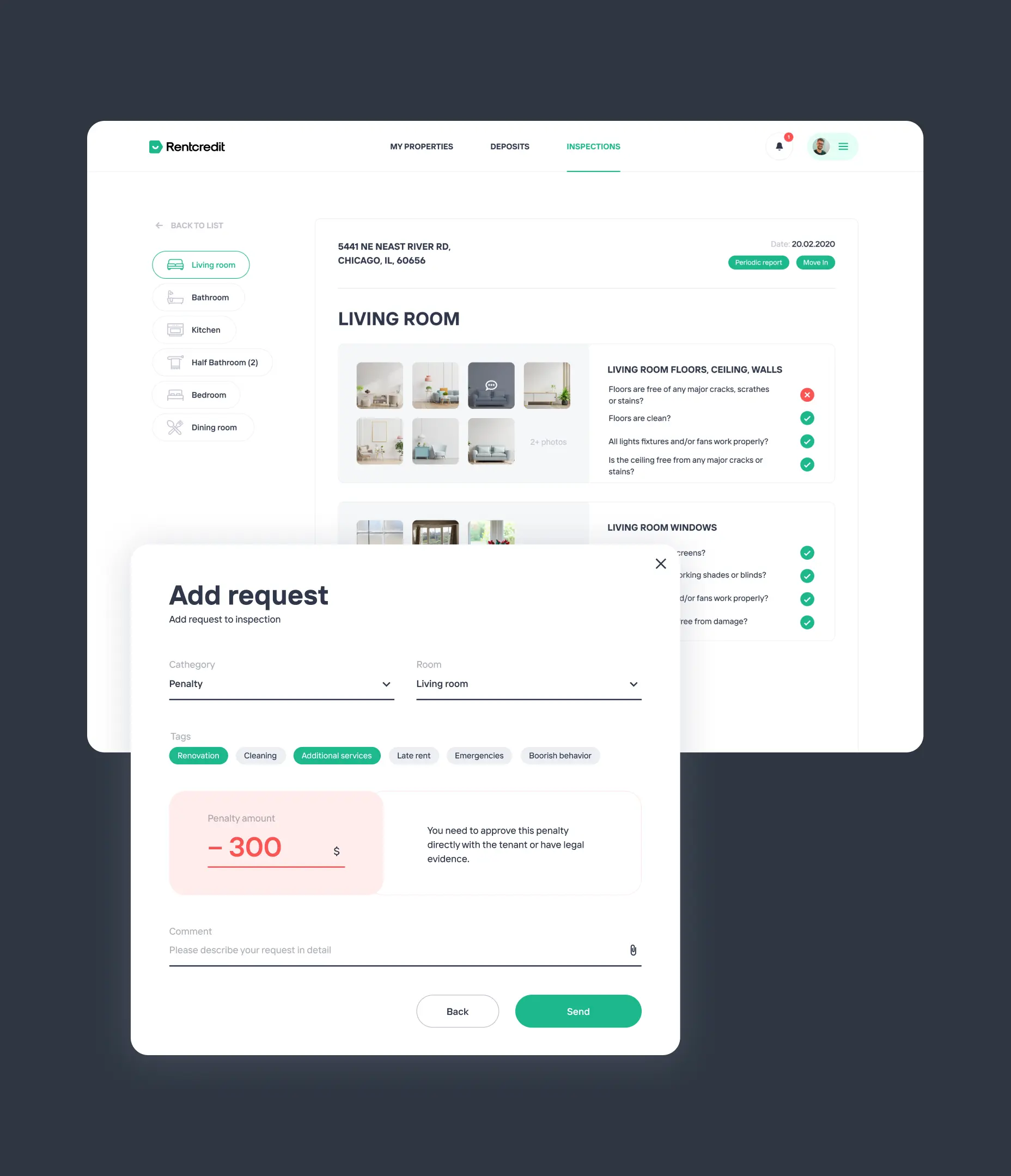 Throughout the occupancy period, it is essential to conduct regular property inspections. To this end, we have afforded tenants the opportunity to upload photographs of the property, while landlords benefit from a meticulously designed checklist. This checklist aids in identifying issues such as dirt, mold, vermin infestations, or any other forms of damage.