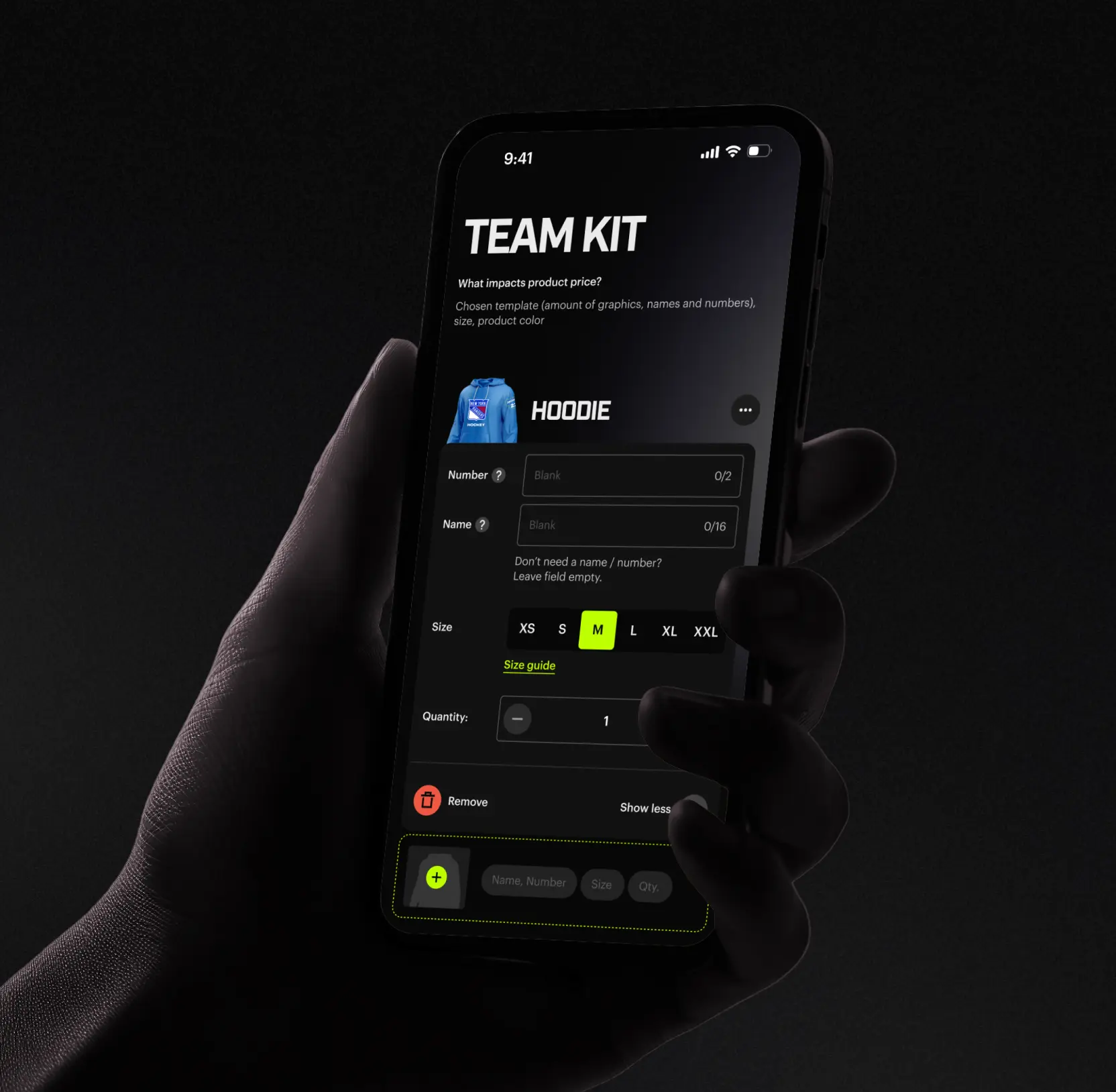Provide streamlined kit ordering. We introduced a feature where managers could customize names, numbers, sizes, and quantities for an entire roster in one workflow. This cut order errors and reduced turnaround time by 8x, while improving the manager experience.