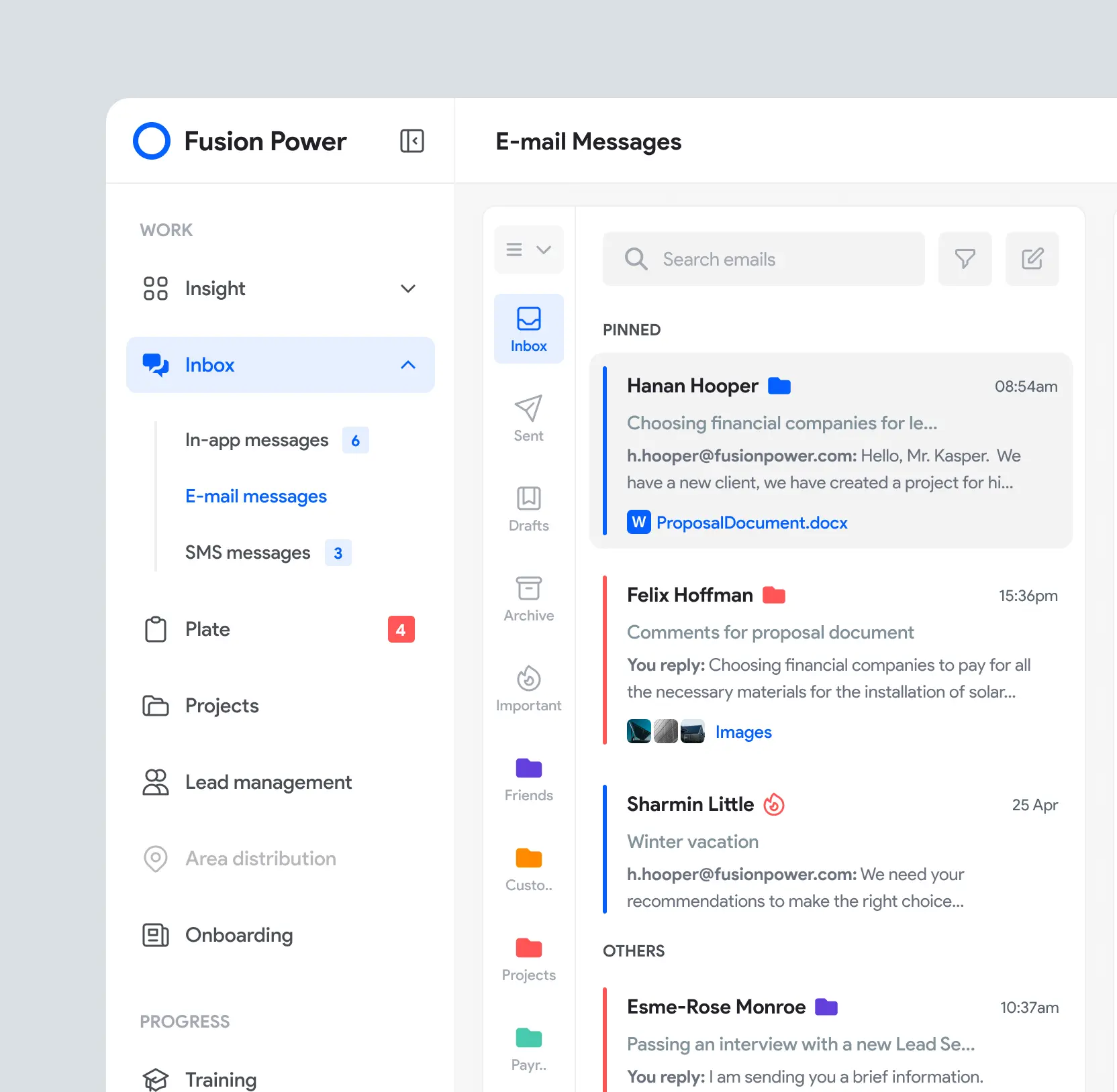 We centralized all project communications into one inbox for SolarDrive, enabling faster response times and better team coordination, which significantly reduced errors and saved valuable work hours.