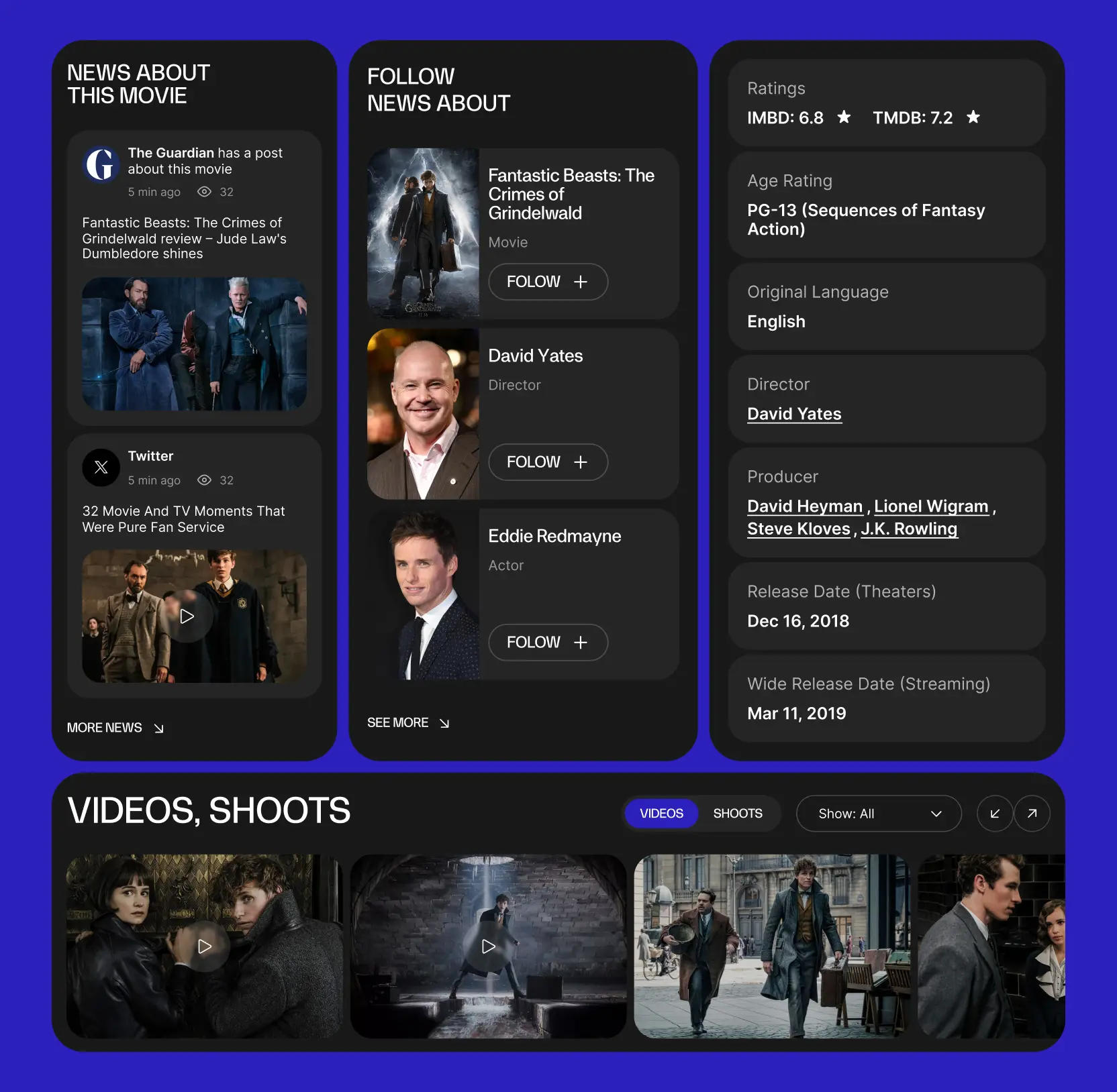 To keep users informed and spark conversations, we introduced a real-time news feed featuring trending updates and curated content from the world of cinema. This not only delivers timely information but also drives deeper engagement through shared discussions.