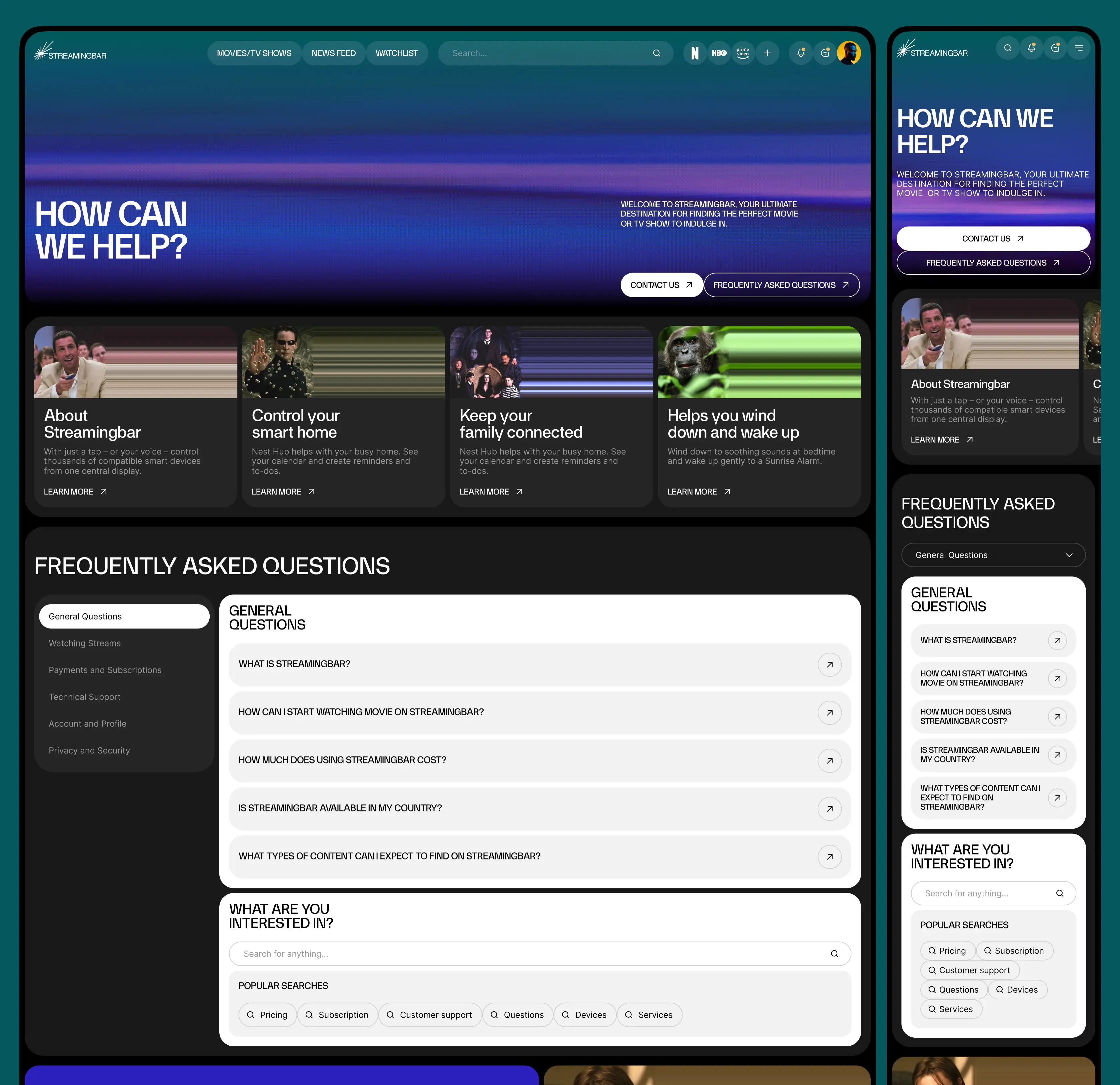 Our mission was to design a solution that empowered both administrators and end-users. The goal was to create a dashboard that provided deep analytics, personalized content recommendations, and a cohesive brand identity, positioning Streamingbar as a leading, user-centric streaming service.