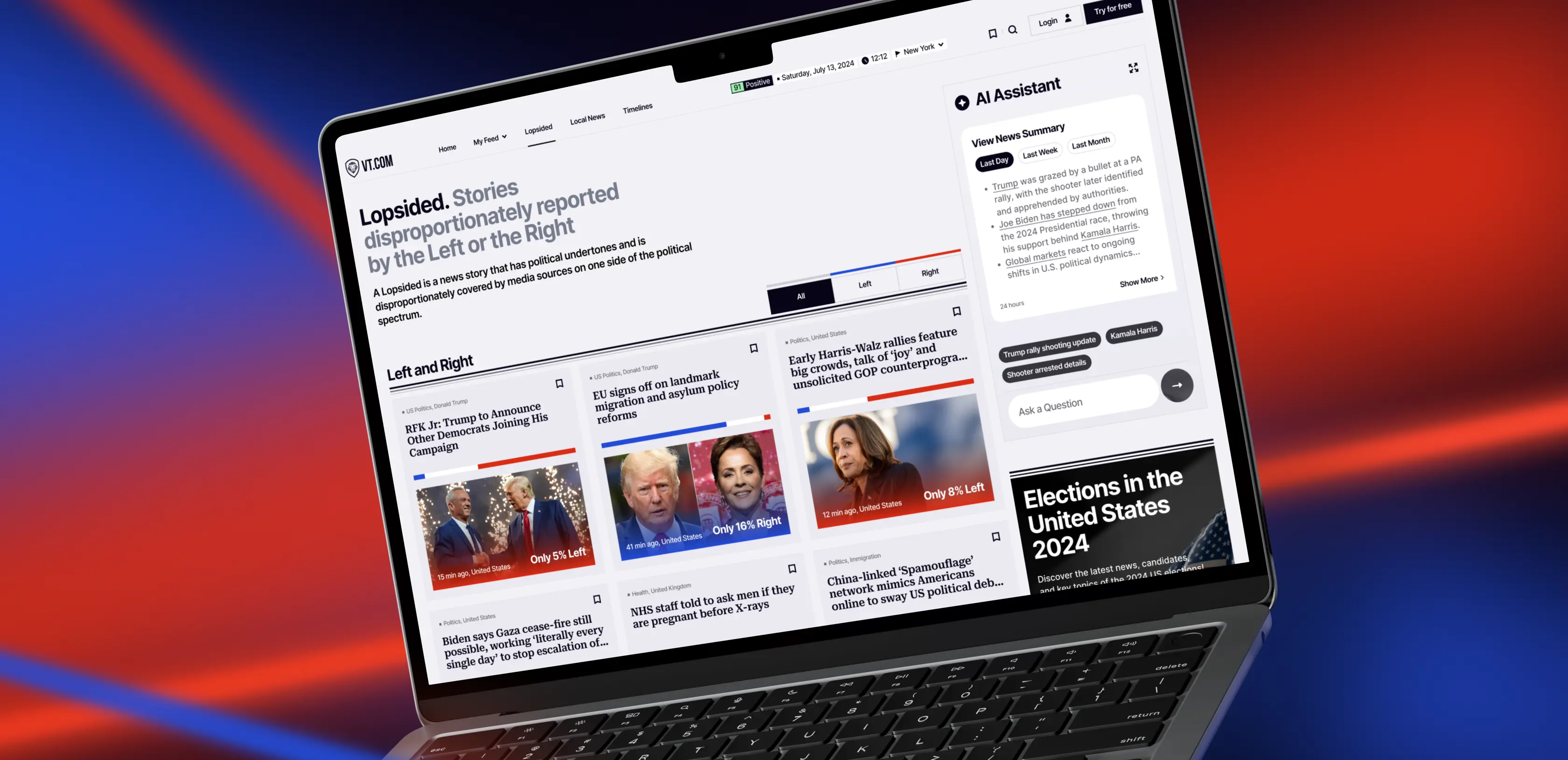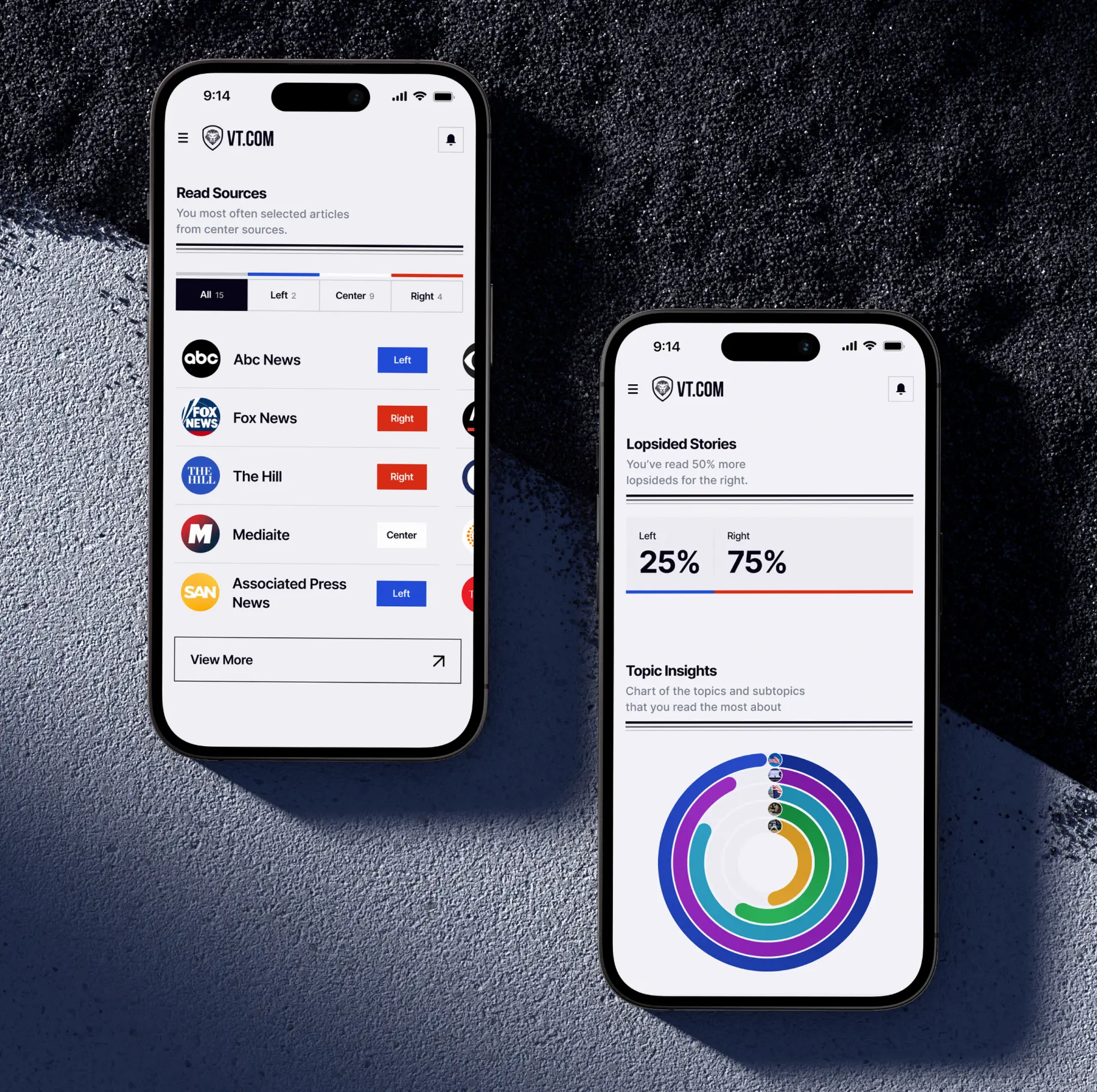 VTnews.ai is an aggregator that scans over 130,000 sources in real time. Our AI analyzes articles on the same topic from various media outlets and compiles them into a unified "story." On the story page, readers find an AI-generated summary alongside short thesis from left, center, and right-leaning media. This provides an immediate, three-perspective overview and addresses the blind spot many Americans experience.